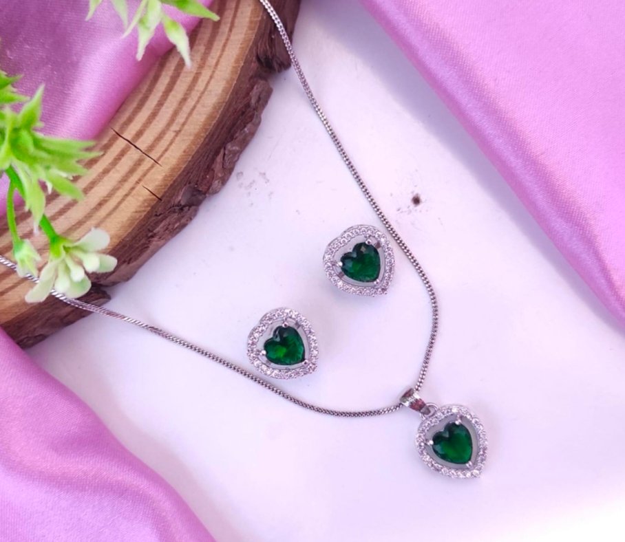 American Diamond Pendent Set – Green